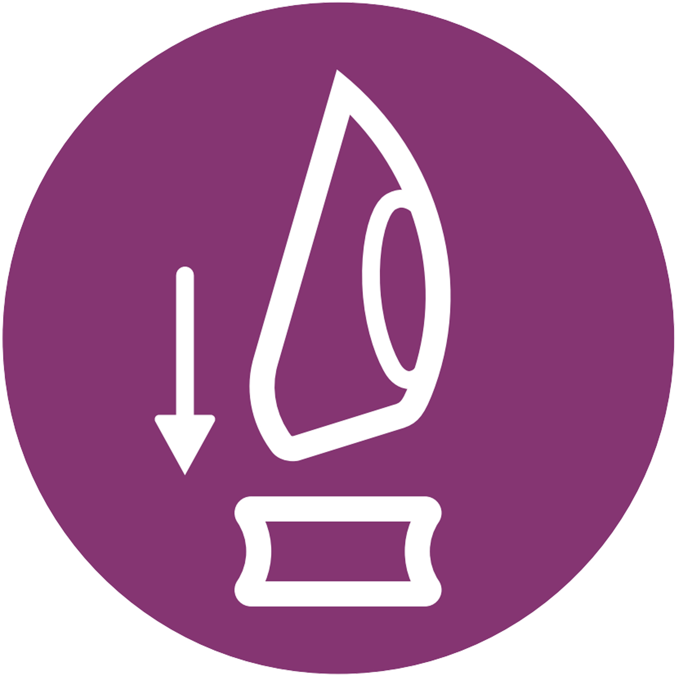 Het strijkijzer kan veilig op de voet bevestigd worden met ons draagvergrendelingssysteem. Het snoer is gemakkelijk rond de voet te wikkelen en wordt met een klem netjes op zijn plaats gehouden.